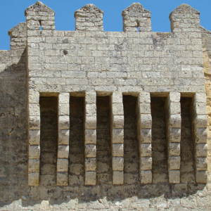 Caja de obra o bien una galería que forma un voladizo continuo a lo largo de la coronación de una fortificación, en el que el piso en vuelo, perforado, permite el lanzamiento de proyectiles verticalmente para proteger ciertas áreas vulnerables, como el pie de las murallas.